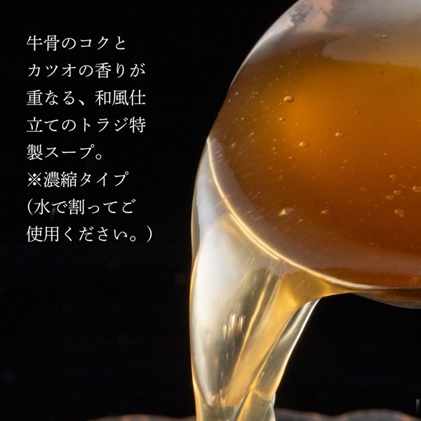 ・ダブルスープの深い旨み:牛骨のコクとカツオの香りが重なる、和風仕立ての特製スープ。
