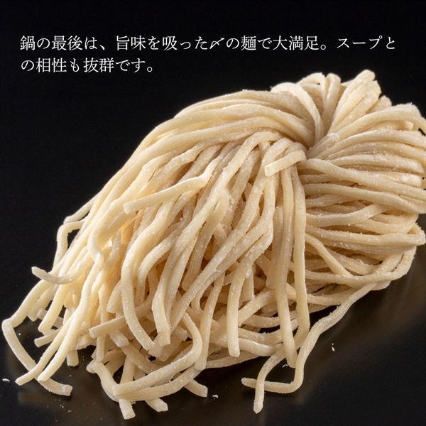 ・〆まで美味しい:鍋の最後は、旨味を吸った〆の麺で大満足。スープとの相性も抜群です。