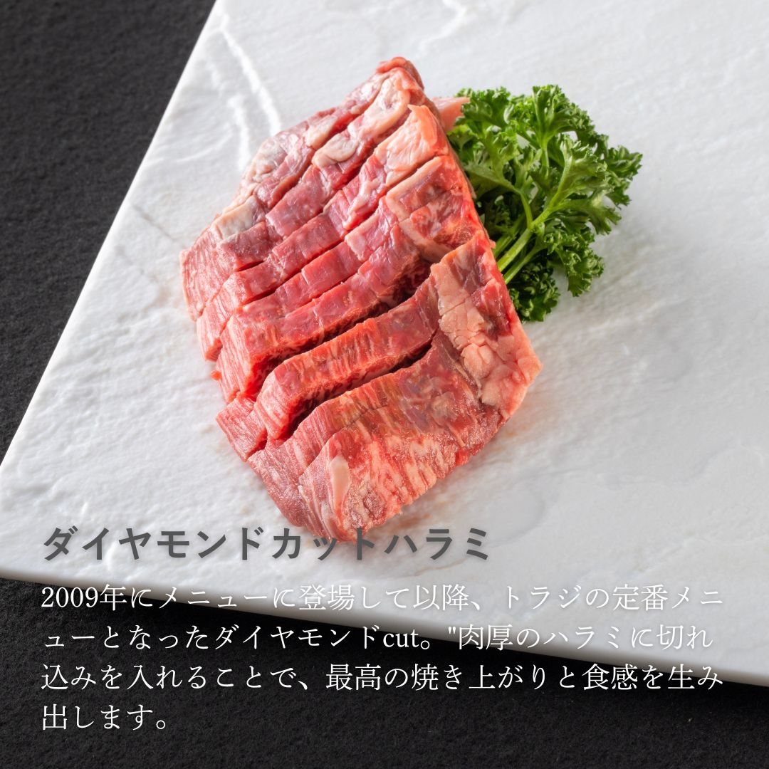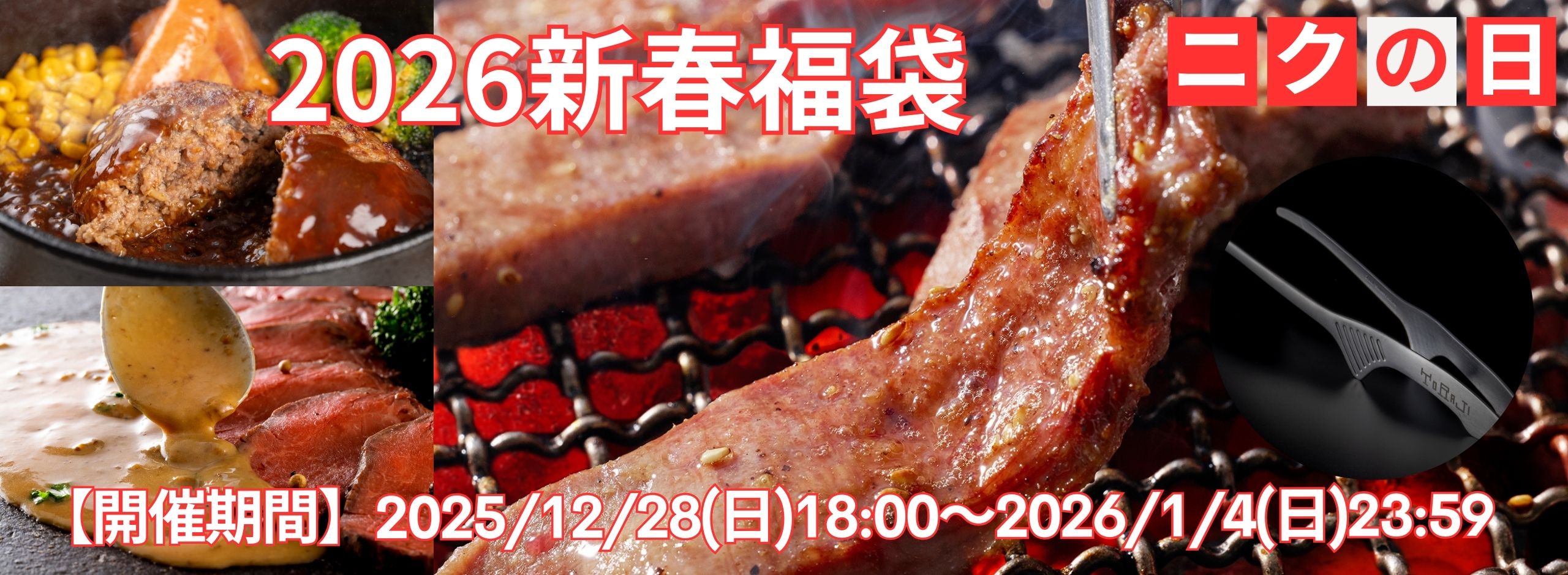 ニクの日キャンペーン 1年の最後を締めくくる「ニクの日」は期間を延長して「2026新春福袋」を販売します。福袋の中には、トラジの人気商品詰合せ(焼肉セット、ローストビーフ、ハンバーグ、冷凍スープ)が入っています。そして特別に、トラジのロゴ入りトングもセットにしました。年明けに届くこの豪華な福袋で、新年の始まりを贅沢に彩りましょう。数量限定なので、お早めにどうぞ! もちろん、対象商品のご購入ではポイント5倍となります。 開催日程:2025年12月28日(日)18:00~2026年1月4日(日)23:59 2026新春福袋 【内容量】 黒毛和牛カルビ 100g プライムハラミ 100g ダイヤモンドカットカルビ 120g ダイヤモンドカットハラミ 120g トラジ焼肉のたれ(さらさら醬油だれ) 1本 こだわりの黒毛和牛ローストビーフ 300g ※特製ポルチーニソース付き 黒毛和牛100%ハンバーグ 120g×2個 冷凍コムタンスープ 200g×2パック 冷凍ユッケジャンスープ 200g×2パック トラジロゴ入りトング 1本 【特別提供価格】 16,800円(税込) 購入する フリーズドライスーププレゼント対象商品 TORAJIセット ¥6,000(税込) お気に入りに追加 スペシャルセット ¥9,000(税込) お気に入りに追加 プレミアムセット ¥15,000(税込) お気に入りに追加 お気に入り一覧 お届けのイメージ 大切な方、お世話になった方への贈り物としてご満足いただけるよう、スタッフが心を込めて以下の通り対応いたします。 1.化粧箱 「TORAJI」ロゴ入りのシックなデザインの化粧箱をご用意しております。定番のお肉だけではなく、スープや麺類、ライスバーガーもオリジナル化粧箱にお入れしてお送りいたします。 2.熨斗&メッセージカード お祝いやお返しなど用途に合わせて熨斗をお選びいただけます。また、メッセージカード(はがき大)の作成も承ります。商品をお選びの際に必要事項をご記載ください。 3.その他ギフト対応 明細書や納品書といたお値段のわかるものは同梱いたしません。 手提げ袋等、その他ご要望がございましたら、ご遠慮なくご相談ください。